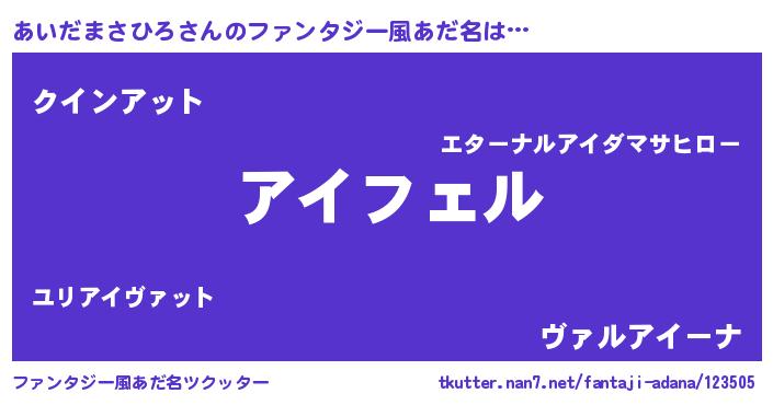 | 女子向けラノベタイトル風あだ名 | 『あいだまさひろ姫と円卓の騎士』 |