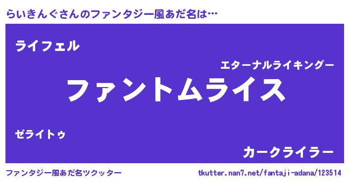 | ヘコむあだ名 | 『らいっぺ』『らいにゅー』 |