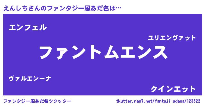 | 男性向けラノベタイトル風あだ名 | 『えんしちの嫁は女の子じゃないと思った?』 |