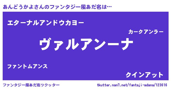 | 男性向けラノベタイトル風あだ名 | 『この素晴らしい世界にあんどうかよを!』 |