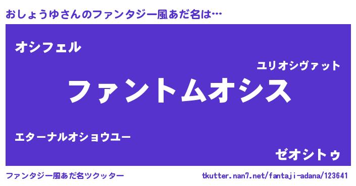 | ヒーロー風カッコイイあだ名 | 『天弓騎士オシ』『スーパーオショウユ』 |