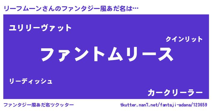 | 男性向けラノベタイトル風あだ名 | 『リーフムーンの嫁は女の子じゃないと思った?』 |