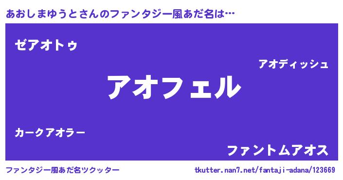 | ヒーロー風カッコイイあだ名 | 『スーパーアオシマユウト』 |