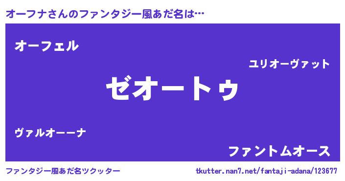 | 男性向けラノベタイトル風あだ名 | 『Re:オーフナから始める異世界生活』 |