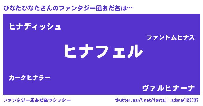 | 男性向けラノベタイトル風あだ名 | 『ヒナタヒナタアートオンライン』 |