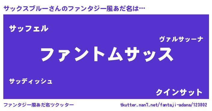 | 男性向けラノベタイトル風あだ名 | 『サックスブルーの嫁は女の子じゃないと思った?』 |