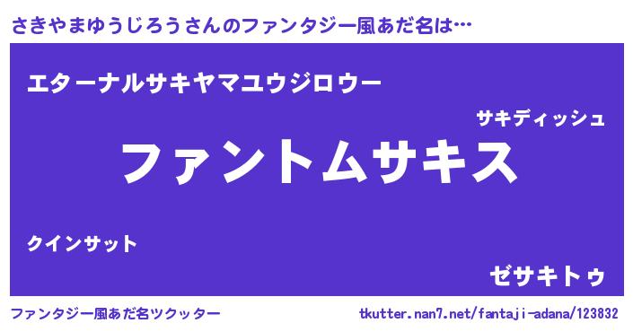 | 男性向けラノベタイトル風あだ名 | 『さきやまゆうじろうの嫁は女の子じゃないと思った?』 |