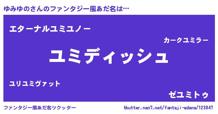 | 意味不明あだ名 | 『永久保存ゆみゆの』『自称ゆみゆの』 |