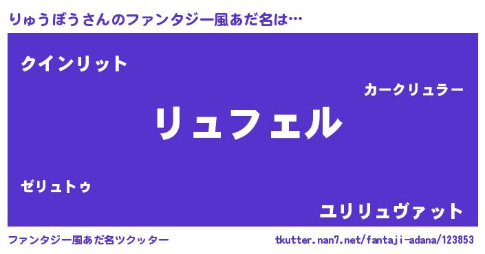 | 自動車の名前っぽいあだ名 | 『リュティマ』『リンR』『フェリーュ』 |