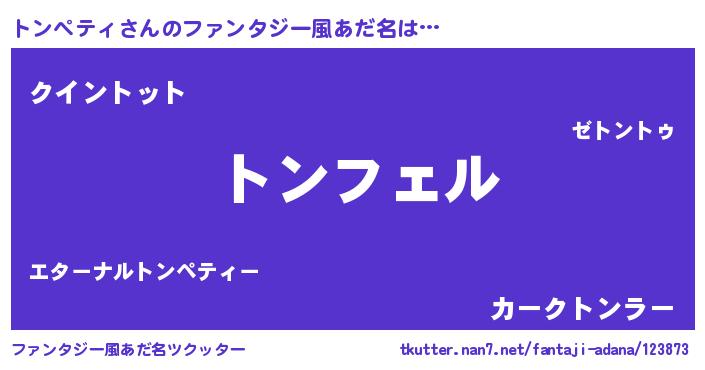 | 女子向けラノベタイトル風あだ名 | 『トンペティ姫と円卓の騎士』 |