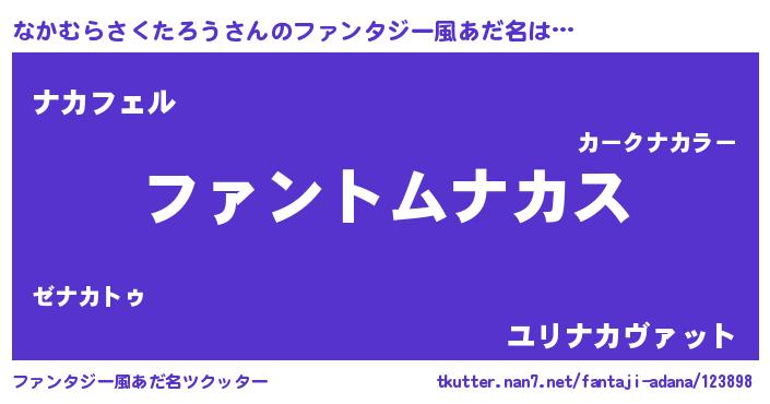 | ポケモン風あだ名 | 『ヒナカムラサクタロウ』『ナカチュウ』 |