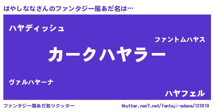 | 伝説のあだ名 | 『聞きしに勝る勇者はやしなな』 |