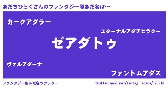 | 男性向けラノベタイトル風あだ名 | 『あだちひらくに滅ぼされるだけの簡単なお仕事です』 |