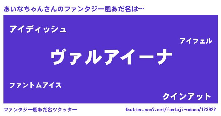 | 意味不明あだ名 | 『住所不定無職あいなちゃん(68歳)』 |