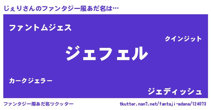 | 男性向けラノベタイトル風あだ名 | 『じぇりの憂鬱』 |