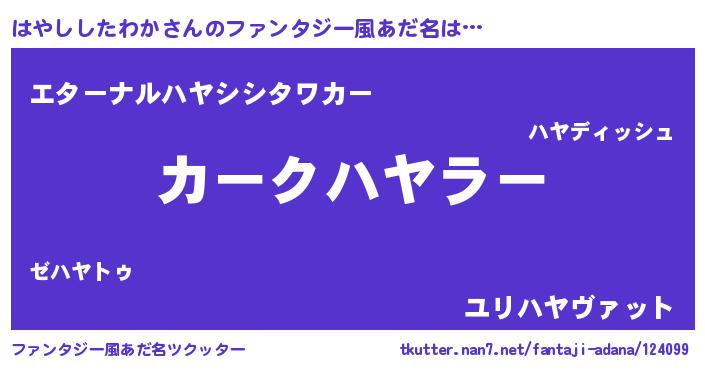 | 男性向けラノベタイトル風あだ名 | 『緋弾のハヤシシタワカ』 |