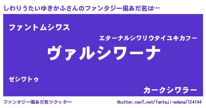 | 女子向けラノベタイトル風あだ名 | 『しわりうたいゆきかふが死なない童話 林檎のしわりうたいゆきかふの診療簿』 |