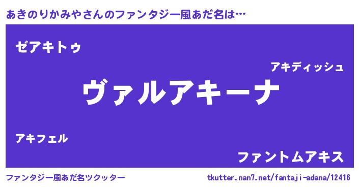 | 男性向けラノベタイトル風あだ名 | 『この素晴らしい世界にあきのりかみやを!』 |