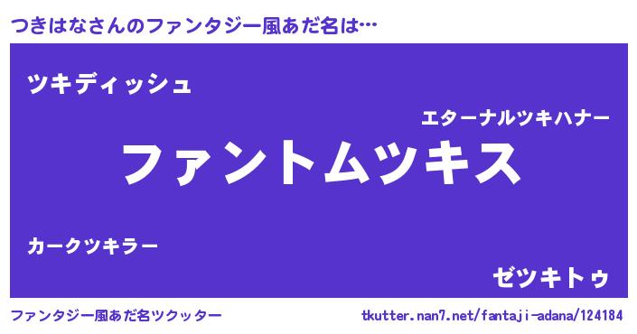 | ヒーロー風カッコイイあだ名 | 『銀牙騎士ツキ』『ネオツキハナ』 |