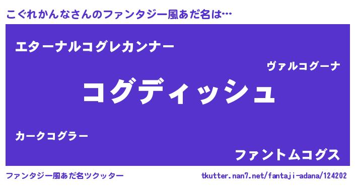 | ポケモン風あだ名 | 『ゼニコグ』『コグレダネ』 |