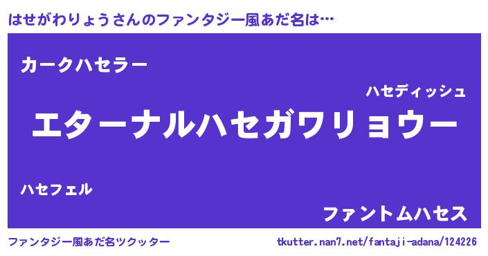 | ポケモン風あだ名 | 『ハセガダネ』『ハセゴンZ』 |