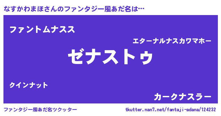 | 意味不明あだ名 | 『自称なすかわまほ』 |