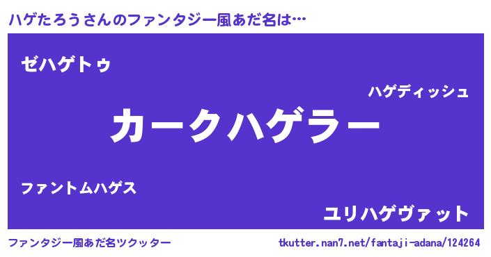 | 意味不明あだ名 | 『自称ハゲたろう』『永久保存ハゲたろう』 |