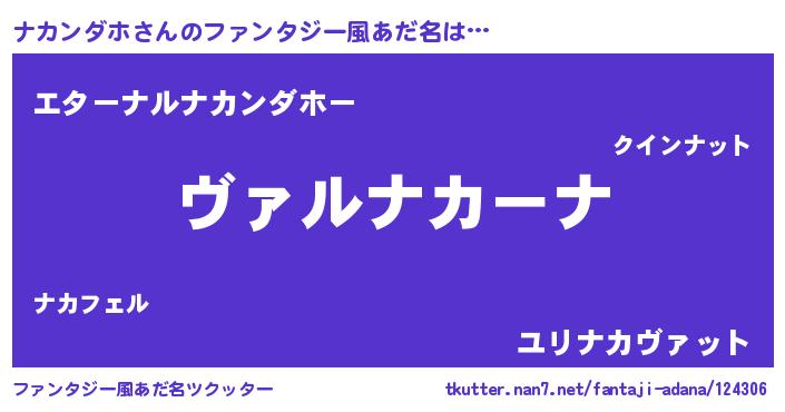 | 男性向けラノベタイトル風あだ名 | 『魔弾の王とナカンダホ』 |