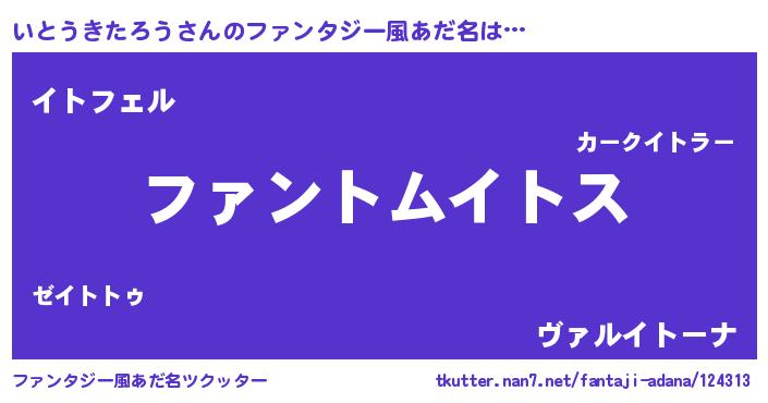 | ヒーロー風カッコイイあだ名 | 『炎刃騎士イト』『仮面イトダー』 |