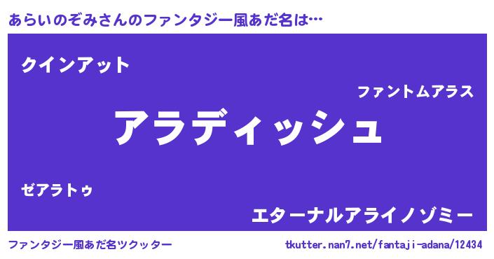 | ヒーロー風カッコイイあだ名 | 『ネオアライノゾミ』『暗黒騎士アラ』 |