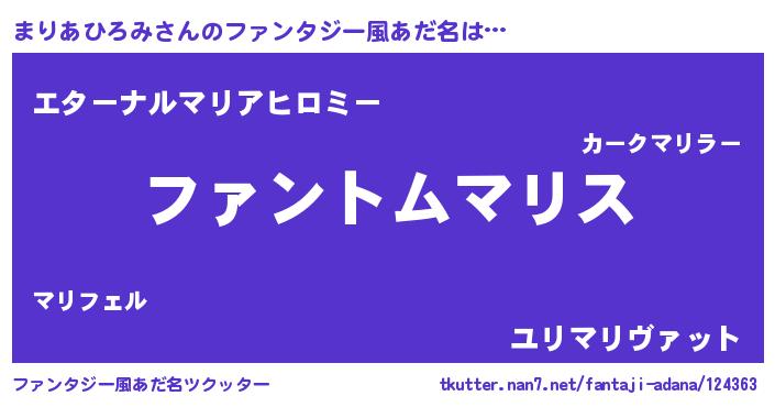 | ヒーロー風カッコイイあだ名 | 『幻影騎士マリ』『スーパーマリアヒロミ』 |