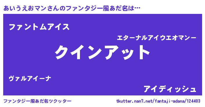 | 女子向けラノベタイトル風あだ名 | 『あいうえおマン恋絵巻』 |