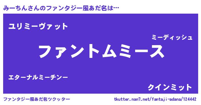 | 男性向けラノベタイトル風あだ名 | 『ダンジョンにみーちんを求めるのは間違っているだろうか』 |