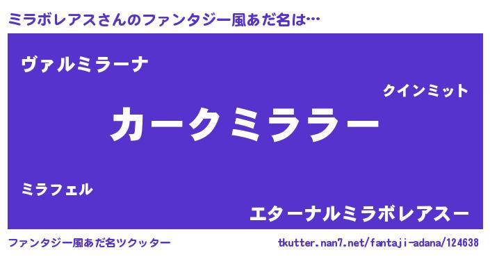 | ヒーロー風カッコイイあだ名 | 『仮面ミラダー』『スーパーミラボレアス』 |