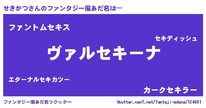 | 男性向けラノベタイトル風あだ名 | 『この素晴らしい世界にせきかつを!』 |