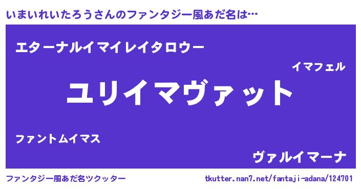 | 男性向けラノベタイトル風あだ名 | 『いまいれいたろう~年齢イコール彼女いない歴の魔法使い~』 |