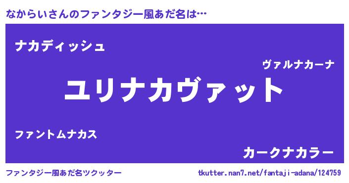 | 男性向けラノベタイトル風あだ名 | 『転生したらなからいだった件』 |