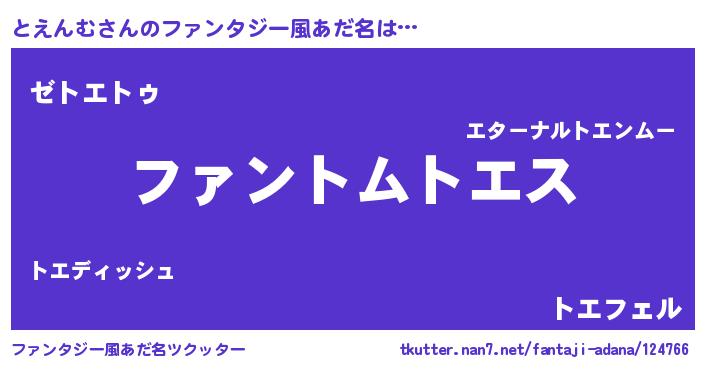 | ヒーロー風カッコイイあだ名 | 『幻影騎士トエ』『サイバー戦士トエンム』 |