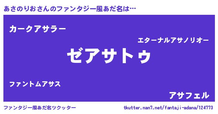 | 男性向けラノベタイトル風あだ名 | 『Re:あさのりおから始める異世界生活』 |