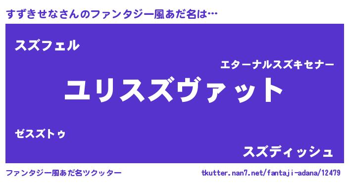 | 男性向けラノベタイトル風あだ名 | 『すずきせな~年齢イコール彼女いない歴の魔法使い~』 |