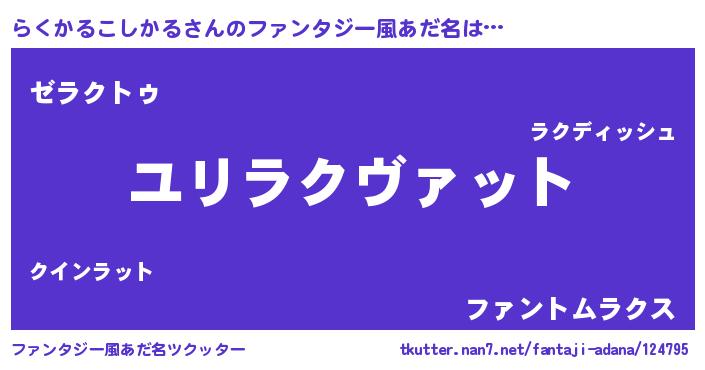 | ヘコむあだ名 | 『らくを』『らくかるこしかる(遠い目)』 |