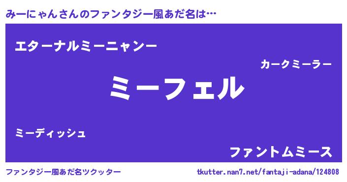 | 男性向けラノベタイトル風あだ名 | 『みーにゃんの憂鬱』 |
