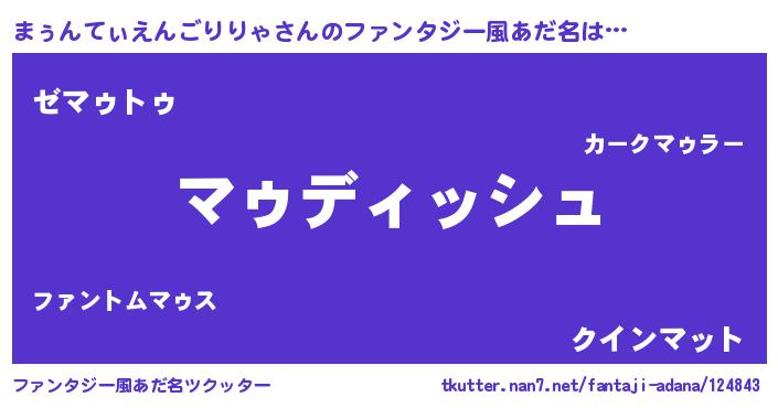 | 男性向けラノベタイトル風あだ名 | 『まぅんてぃえんごりりゃという概念が存在しない退屈な世界 』 |