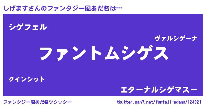 | 男性向けラノベタイトル風あだ名 | 『ダンジョンにしげますを求めるのは間違っているだろうか』 |