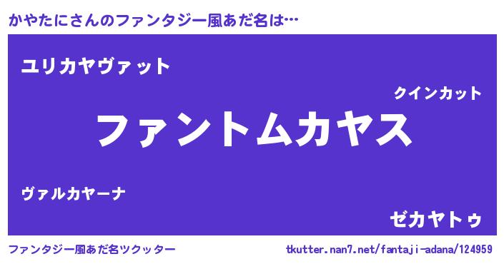 | 男性向けラノベタイトル風あだ名 | 『かやたにの嫁は女の子じゃないと思った?』 |