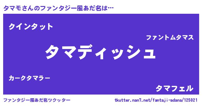 | 男性向けラノベタイトル風あだ名 | 『タマモという概念が存在しない退屈な世界 』 |