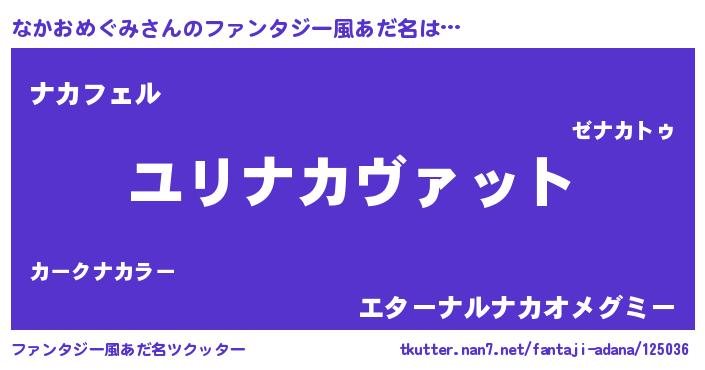 | 男性向けラノベタイトル風あだ名 | 『なかおめぐみ~年齢イコール彼女いない歴の魔法使い~』 |