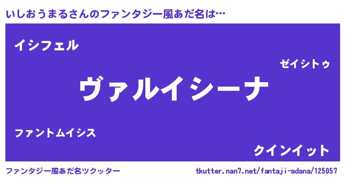 | 男性向けラノベタイトル風あだ名 | 『魔弾の王といしおうまる』 |