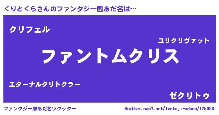 | 男性向けラノベタイトル風あだ名 | 『ダンジョンにくりとくらを求めるのは間違っているだろうか』 |