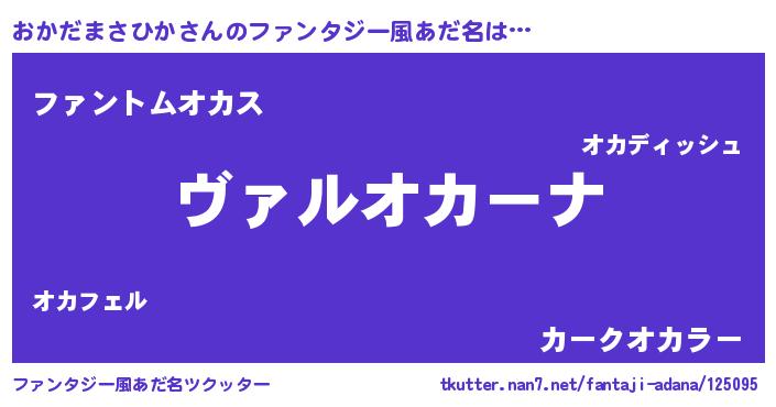 | 男性向けラノベタイトル風あだ名 | 『魔弾の王とおかだまさひか』 |